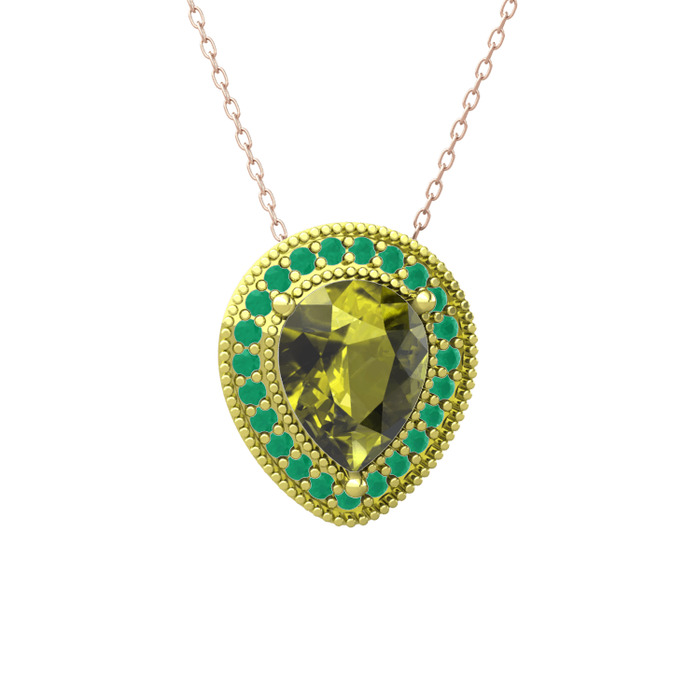 Peridot ve kök zümrüt 925 ayar altın kaplama gümüş kolye (40 cm gümüş rolo zincir)