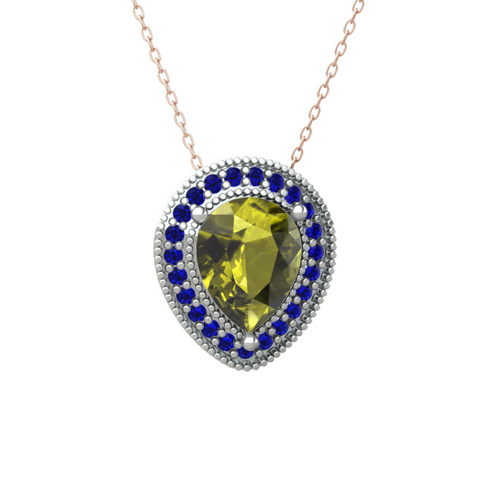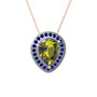 Peridot ve lab safir 925 ayar gümüş kolye (40 cm rose altın rolo zincir)