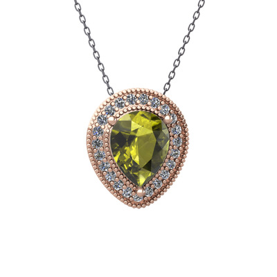 Peridot ve pırlanta 14 ayar rose altın kolye (0.264 karat, 40 cm gümüş rolo zincir)