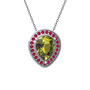 Peridot ve rodolit garnet 18 ayar beyaz altın kolye (40 cm gümüş rolo zincir)