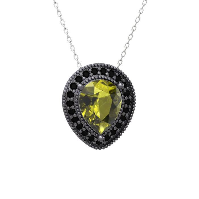 Peridot ve siyah zirkon 925 ayar siyah rodyum kaplama gümüş kolye (40 cm gümüş rolo zincir)