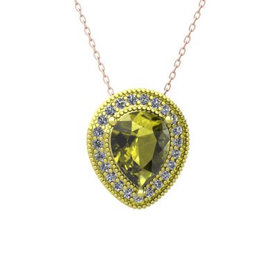Peridot ve swarovski 18 ayar altın kolye (40 cm gümüş rolo zincir)