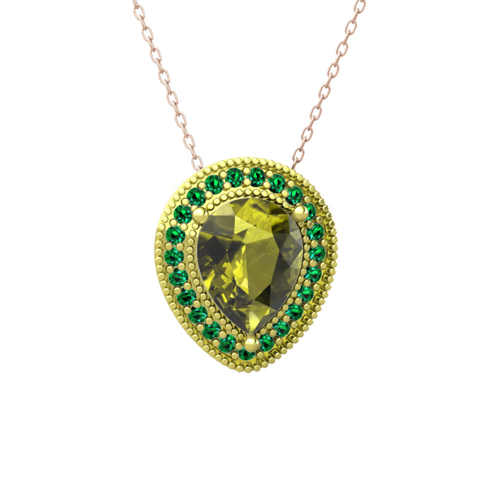 Peridot ve yeşil kuvars 925 ayar altın kaplama gümüş kolye (40 cm rose altın rolo zincir)