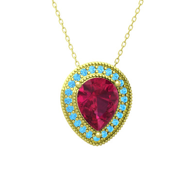 Rodolit garnet ve akuamarin 8 ayar altın kolye (40 cm gümüş rolo zincir)