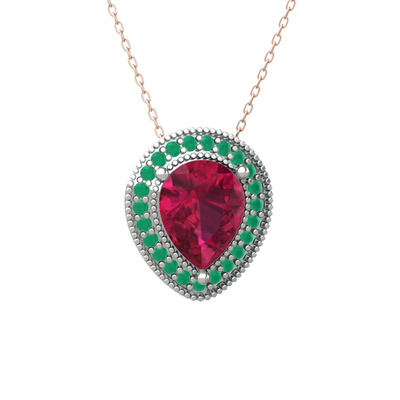 Rodolit garnet ve kök zümrüt 8 ayar beyaz altın kolye (40 cm rose altın rolo zincir)