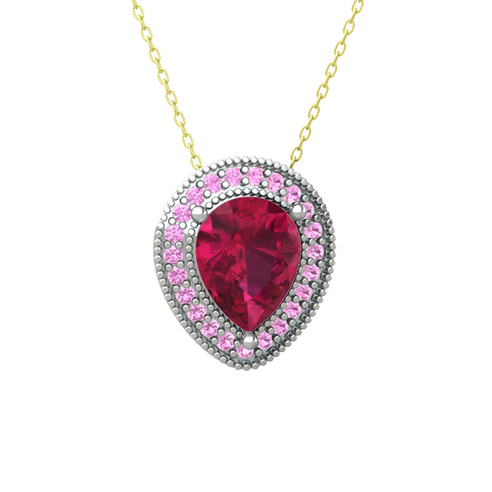 Rodolit garnet ve pembe kuvars 18 ayar beyaz altın kolye (40 cm altın rolo zincir)