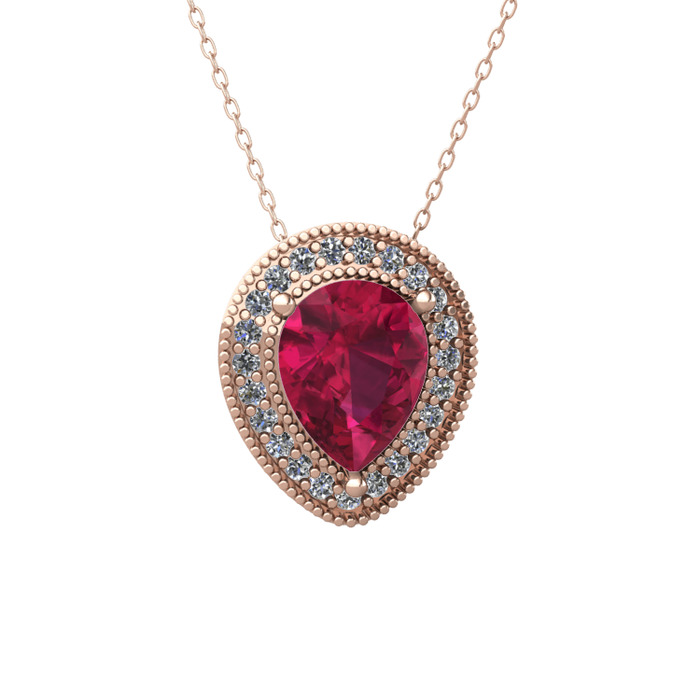 Rodolit garnet ve pırlanta 18 ayar rose altın kolye (0.264 karat, 40 cm rose altın rolo zincir)