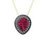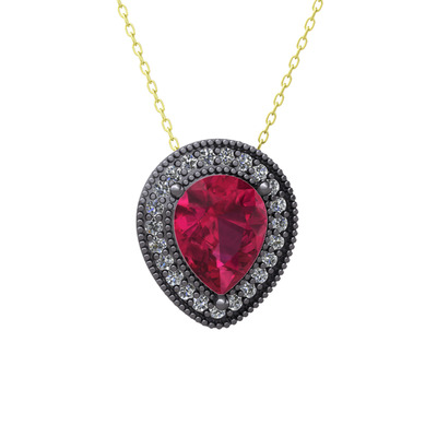 Rodolit garnet ve pırlanta 925 ayar siyah rodyum kaplama gümüş kolye (0.264 karat, 40 cm gümüş rolo zincir)