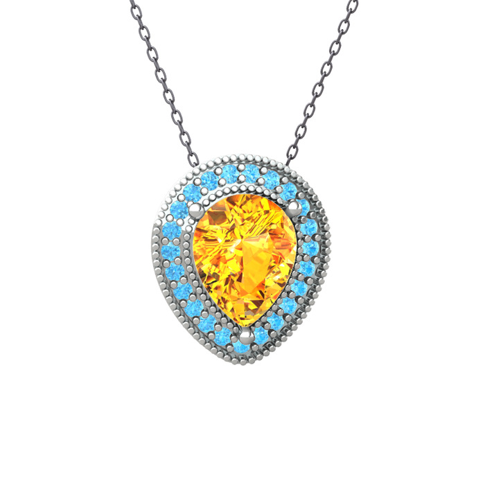 Sitrin ve akuamarin 18 ayar beyaz altın kolye (40 cm gümüş rolo zincir)
