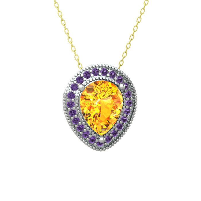 Sitrin ve ametist 8 ayar beyaz altın kolye (40 cm altın rolo zincir)