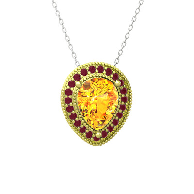 Sitrin ve kök yakut 925 ayar altın kaplama gümüş kolye (40 cm beyaz altın rolo zincir)