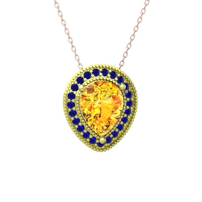 Sitrin ve lab safir 8 ayar altın kolye (40 cm rose altın rolo zincir)