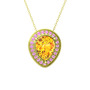 Sitrin ve pembe kuvars 8 ayar altın kolye (40 cm altın rolo zincir)
