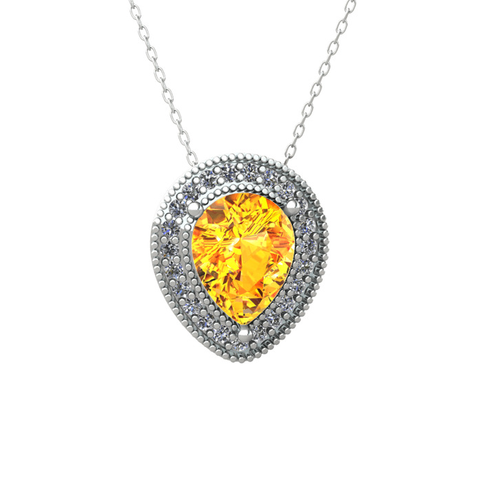 Sitrin ve pırlanta 18 ayar beyaz altın kolye (0.264 karat, 40 cm gümüş rolo zincir)