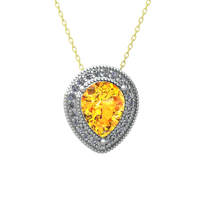 Sitrin ve pırlanta 8 ayar beyaz altın kolye (0.264 karat, 40 cm altın rolo zincir)