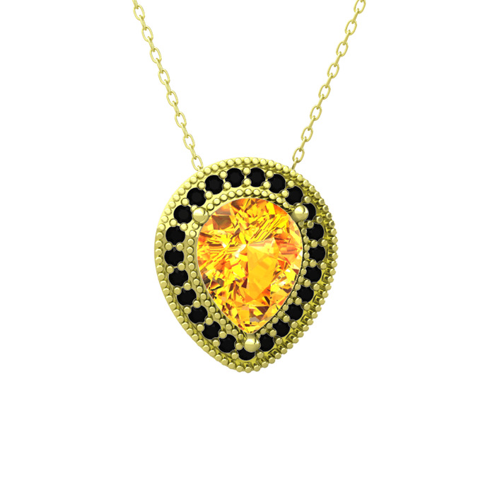 Sitrin ve siyah zirkon 925 ayar altın kaplama gümüş kolye (40 cm altın rolo zincir)
