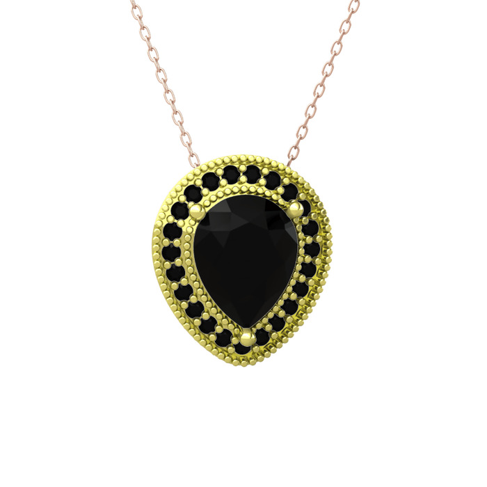 Siyah zirkon 14 ayar altın kolye (40 cm rose altın rolo zincir)