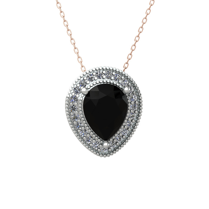 Siyah zirkon ve beyaz zirkon 925 ayar gümüş kolye (40 cm rose altın rolo zincir)