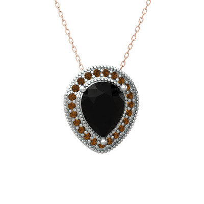 Siyah zirkon ve dumanlı kuvars 8 ayar beyaz altın kolye (40 cm rose altın rolo zincir)