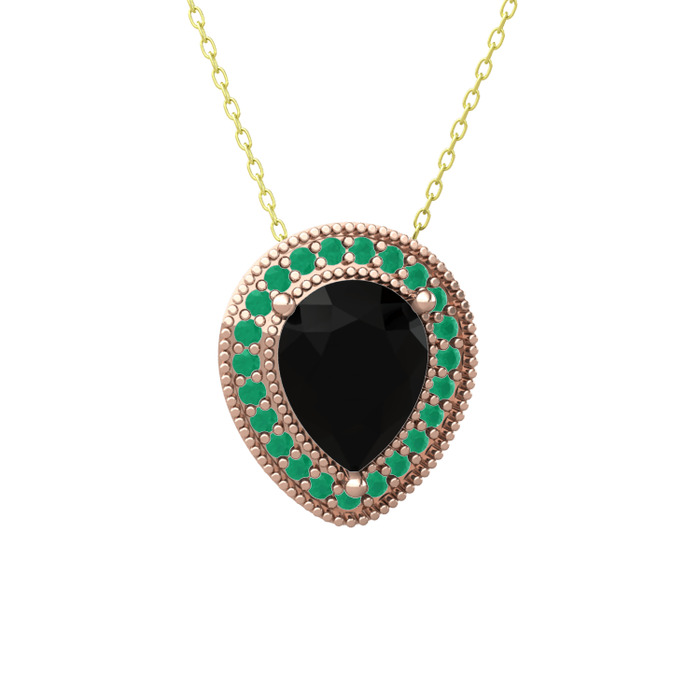 Siyah zirkon ve kök zümrüt 8 ayar rose altın kolye (40 cm altın rolo zincir)