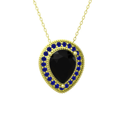 Siyah zirkon ve lab safir 18 ayar altın kolye (40 cm altın rolo zincir)