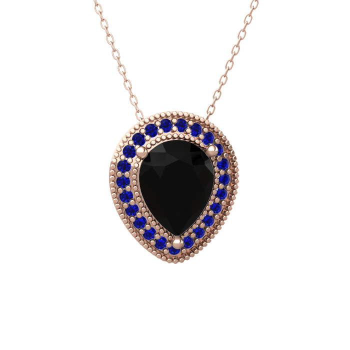 Siyah zirkon ve lab safir 18 ayar rose altın kolye (40 cm rose altın rolo zincir)