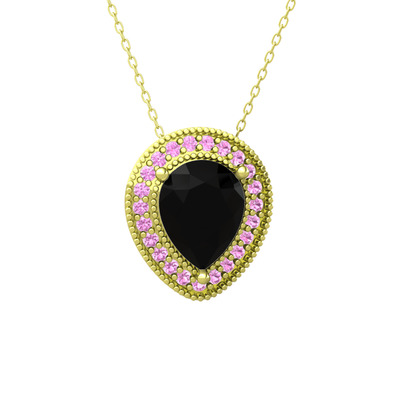 Siyah zirkon ve pembe kuvars 18 ayar altın kolye (40 cm altın rolo zincir)