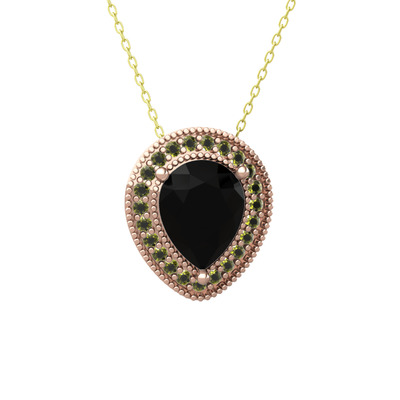 Siyah zirkon ve peridot 8 ayar rose altın kolye (40 cm altın rolo zincir)
