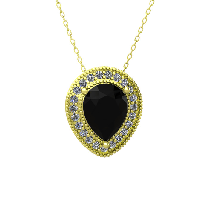 Siyah zirkon ve pırlanta 18 ayar altın kolye (0.264 karat, 40 cm gümüş rolo zincir)