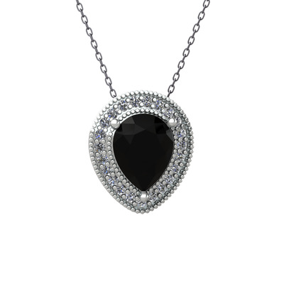 Siyah zirkon ve pırlanta 18 ayar beyaz altın kolye (0.264 karat, 40 cm gümüş rolo zincir)