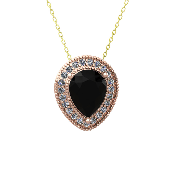 Siyah zirkon ve pırlanta 925 ayar rose altın kaplama gümüş kolye (0.264 karat, 40 cm gümüş rolo zincir)