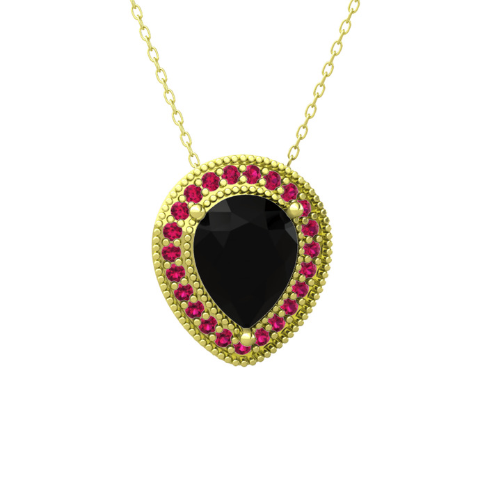 Siyah zirkon ve rodolit garnet 8 ayar altın kolye (40 cm altın rolo zincir)