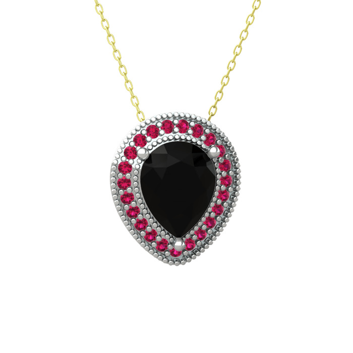 Siyah zirkon ve rodolit garnet 925 ayar gümüş kolye (40 cm altın rolo zincir)
