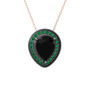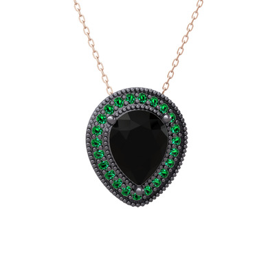 Siyah zirkon ve yeşil kuvars 925 ayar siyah rodyum kaplama gümüş kolye (40 cm rose altın rolo zincir)