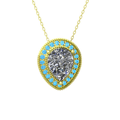 Swarovski ve akuamarin 8 ayar altın kolye (40 cm altın rolo zincir)