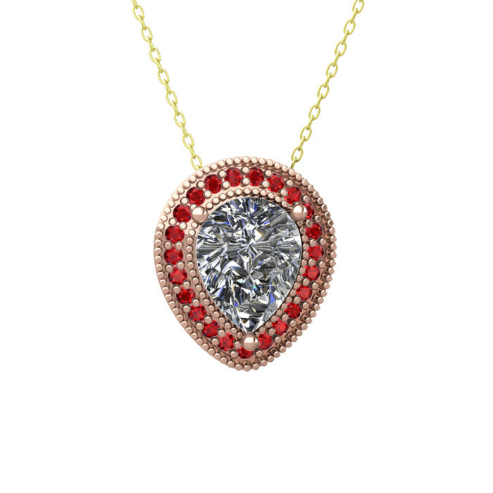 Swarovski ve garnet 18 ayar rose altın kolye (40 cm gümüş rolo zincir)