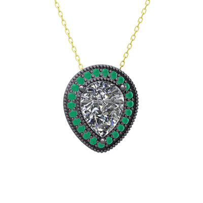 Swarovski ve kök zümrüt 925 ayar siyah rodyum kaplama gümüş kolye (40 cm altın rolo zincir)