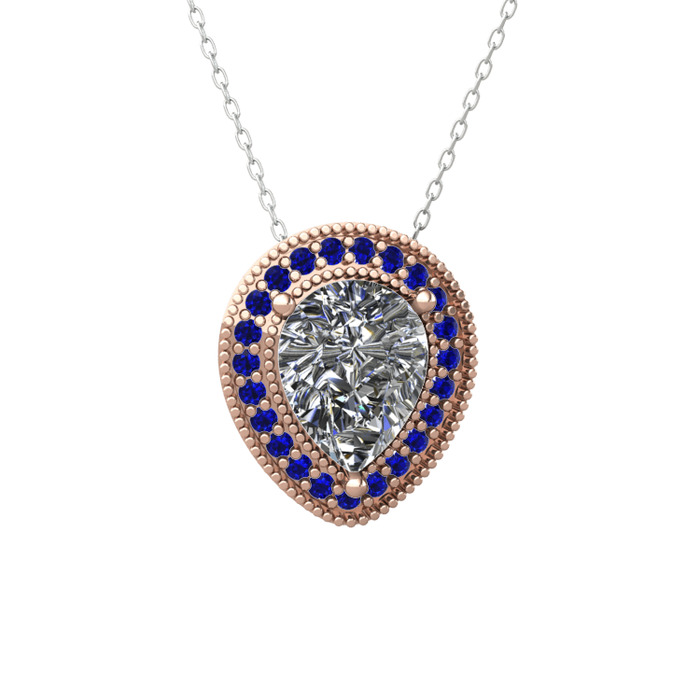 Swarovski ve lab safir 925 ayar rose altın kaplama gümüş kolye (40 cm beyaz altın rolo zincir)