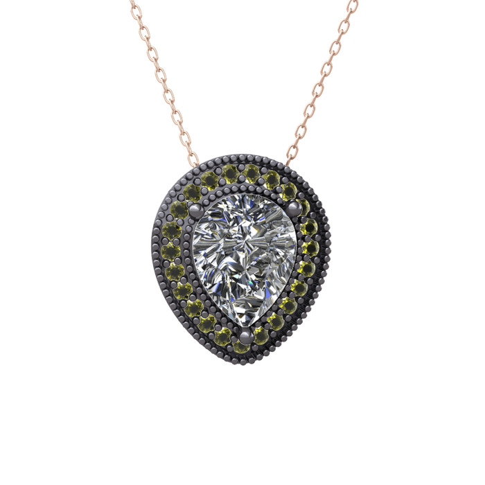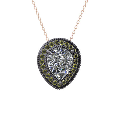 Swarovski ve peridot 925 ayar siyah rodyum kaplama gümüş kolye (40 cm rose altın rolo zincir)