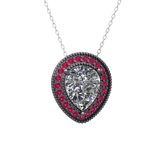 Swarovski ve rodolit garnet 925 ayar siyah rodyum kaplama gümüş kolye (40 cm beyaz altın rolo zincir)