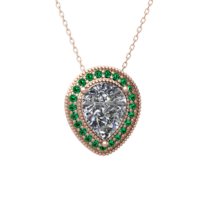 Swarovski ve yeşil kuvars 14 ayar rose altın kolye (40 cm rose altın rolo zincir)