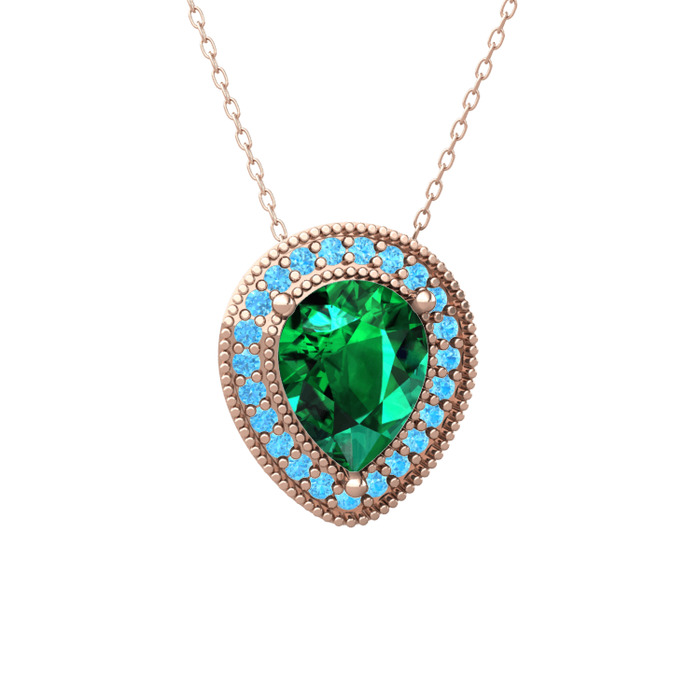 Yeşil kuvars ve akuamarin 8 ayar rose altın kolye (40 cm rose altın rolo zincir)