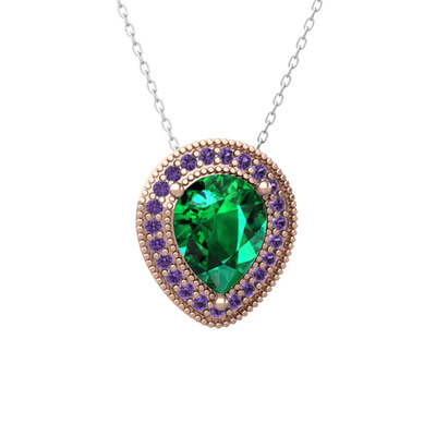 Yeşil kuvars ve ametist 8 ayar rose altın kolye (40 cm gümüş rolo zincir)