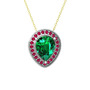 Yeşil kuvars ve rodolit garnet 18 ayar beyaz altın kolye (40 cm altın rolo zincir)