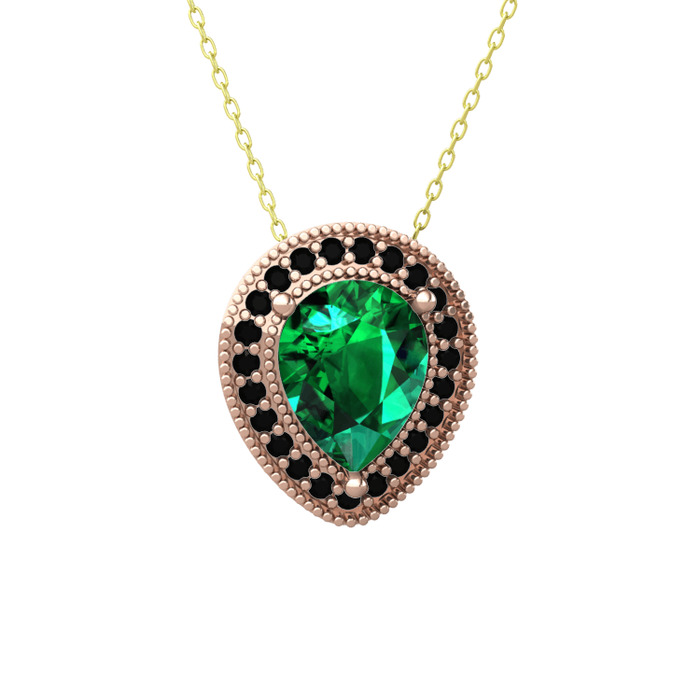 Yeşil kuvars ve siyah zirkon 14 ayar rose altın kolye (40 cm gümüş rolo zincir)