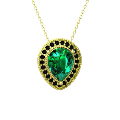 Yeşil kuvars ve siyah zirkon 8 ayar altın kolye (40 cm altın rolo zincir)