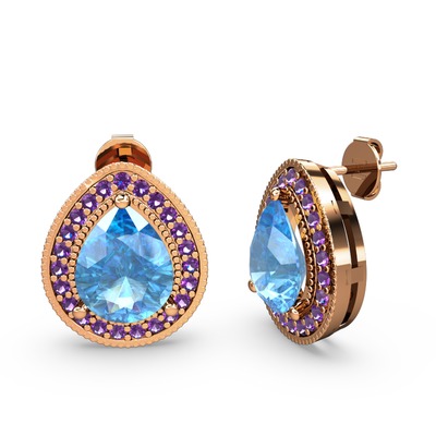 Akuamarin ve ametist 8 ayar rose altın küpe