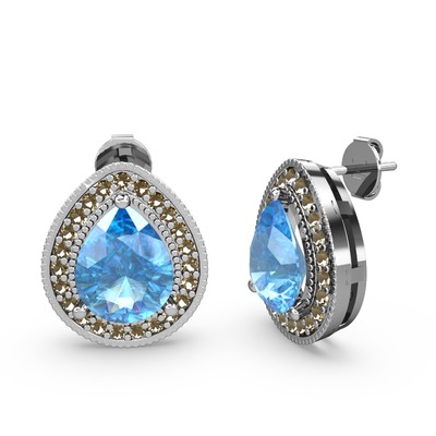 Akuamarin ve dumanlı kuvars 925 ayar gümüş küpe