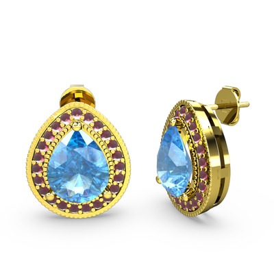 Akuamarin ve kök yakut 18 ayar altın küpe
