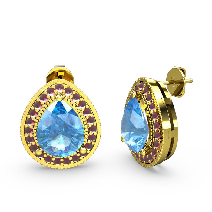 Akuamarin ve kök yakut 925 ayar altın kaplama gümüş küpe
